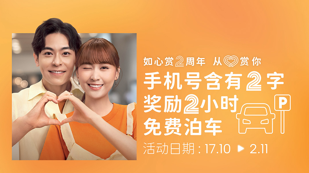 会员登记的手机号码含有“2”字,即可获赠2小时免费停车优惠,于如心广场及D·PARK各享1小时免费停车。