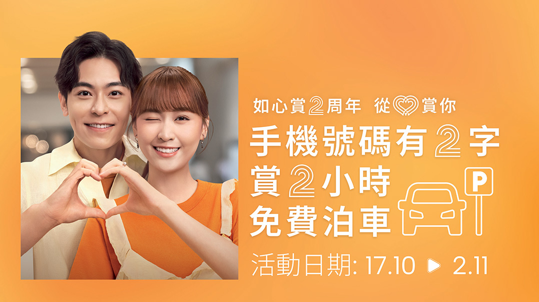 會員的登記手機號碼有「2」字,賞2小時免費泊車,於如心廣場及D·PARK可享受各一小時免費泊車。