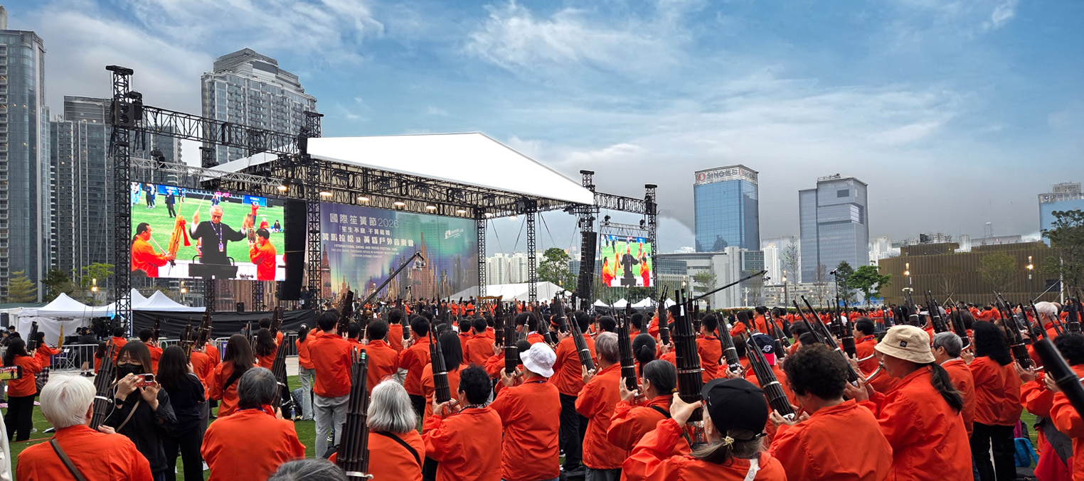 在「國際笙簧節2026」,香港中樂團匯聚逾千名中、西方各類簧片樂器愛好者同台合奏,攜手挑戰健力士世界紀錄™「最大規模的簧鳴樂器合奏」稱號。活動當中,包括由華懋集團全力支持、由荃灣區90位長者組成的「笙生不息 — 荃灣樂齡隊」,一同在舞台上締造世界紀錄,展現中華三千年禮樂文化的魅力。